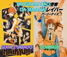Essa semana tentaremos novamente exibir Haikyuu, com um novo encode que, com sorte, não tomará flag no drive. Domingo teremos Patlabor: Early Days, que foi adiado domingo passado para que exibíssemos o final de Wonder Egg Priority.