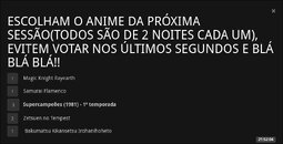 PS: Estão abertas as recomendações para os synchs de pós temporada e o próximo simulcast. O cronograma completo está na sala.