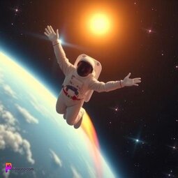 Prompt: elon musk watching the earth in outer space with his starling as birds around him