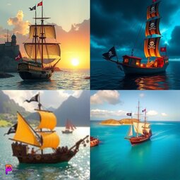 Prompt: make me a picture of a pirate ship with a owl and a frog on it