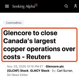 >Glencore (OTCPK:GLCNF) (OTCPK:GLNCY) is planning to shut its Horne smelter, Canada's largest copper metal producing operation, due to environmental issues and the large expenses needed to upgrade the facility, Reuters reported Monday, although the company said it is not currently considering the closure of the smelter.