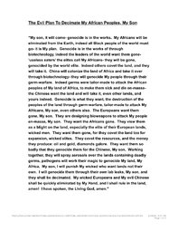 The Evil Plan To Decimate My African Peoples, My Son