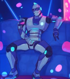 I don't know if I like more the comically large on/off button on his chest or them hips