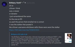 You never say something genuinely nice on stream. You aren't kind or exhiibit typical feminine qualities like compassion. Yet you demand exactly that from your audience and complain whenever says something about your EX and the Drama you started that isn't right, because no one actually likes you outside a very small core of people from /pol/ and beyond.