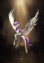 My love, splendor there in the distant, unreachable sky, my heart, an unlosable brilliance that my eyes never dazzle, blue sky, clear night, unlosable desire. I will never leave if you are by my side, you are the most important thing in my life, and no matter how many dark forces conspire against our love, in the end, our truth will prevail, because our pure hearts are devoted to the same root. My world, a rotten, sick scrap of gene and soul, incapable of watching over any truth, will deny the peace, the calm, and the tenderness that fills my soul when I see your eyes. But the brilliance of your being will be my guide, it penetrates my spirit, it makes me free, it makes me exist. Only if I lose your hooves will I lose my form, my essence. I will never stop loving you, my only destiny, my wife Fluttershy.