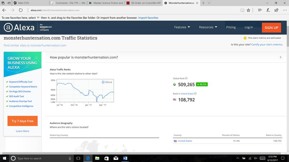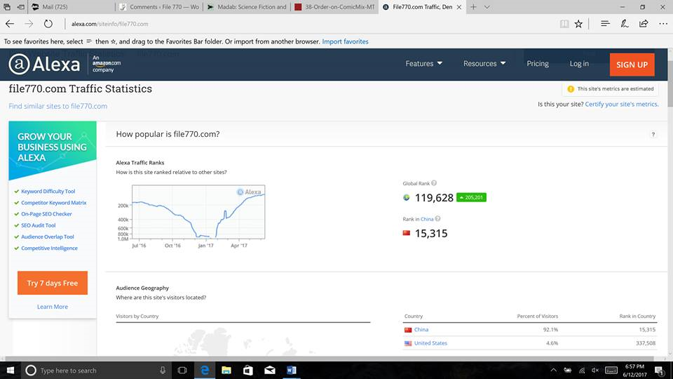 Glyer presents the evidence - the Alexa rankings of the 2 sites - see pics.