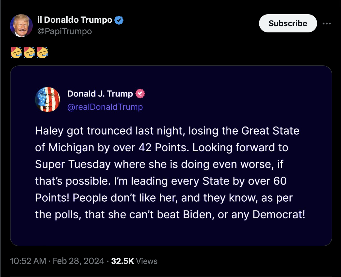 - Trump wins US Virgin Islands caucus, notching third primary victory over Nikki Haley