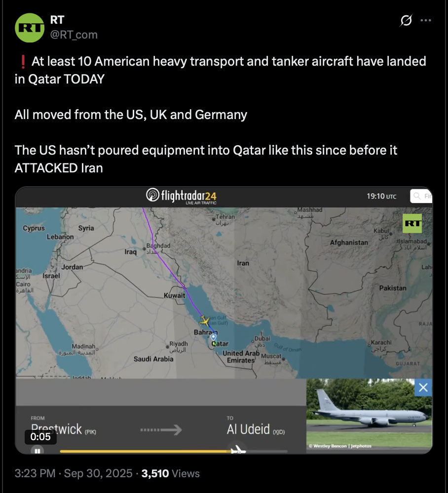 >>242296 RT (TwiX)❗️At least 10 American heavy transport and tanker aircraft have landed in Qatar TODAY