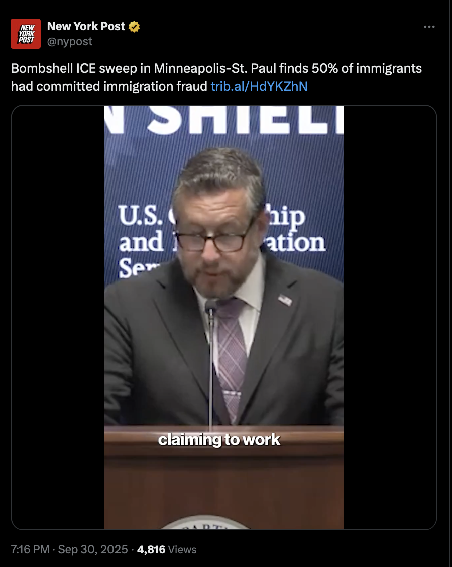 >>242298 NYPost (TwiX) Bombshell ICE sweep in Minneapolis-St. Paul finds 50% of immigrants had committed immigration fraud