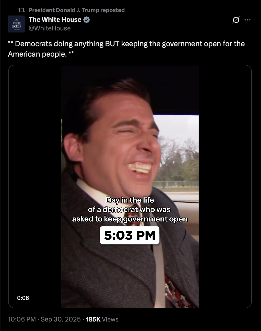 >>242135 TheWhiteHouse (TwiX) 🚨 Democrat-Led Shutdown Will Put Law Enforcement ‘Lives On The Line’ Without Pay