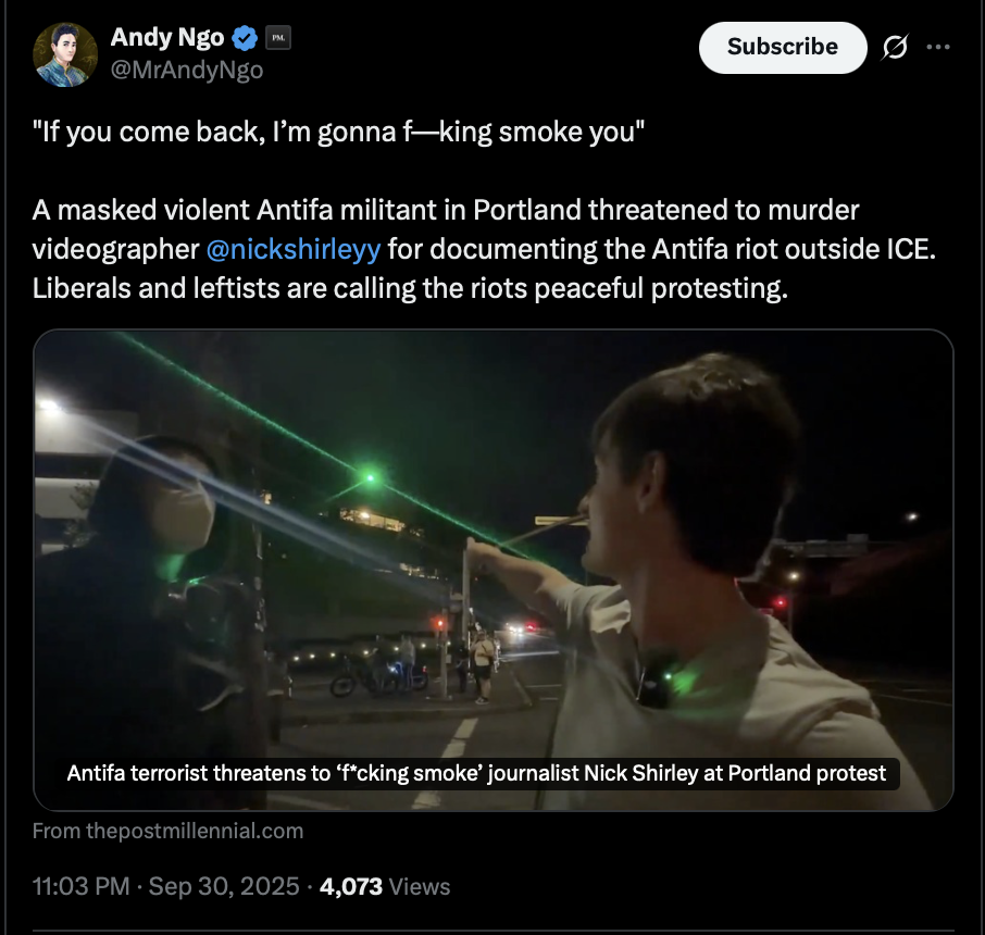 >>242213 AndyNgo (TwiX) The U.S. Secretary of War has formally taken part of the Oregon National Guard under federal control to deploy 200 troops to perform federal functions.