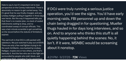 >>242143 DJT (TruSoc) 🚨When ex-FBI Director James Comey was indicted, the weeping and gnashing of teeth from the "nobody is above the law crowd" could be heard around the world.