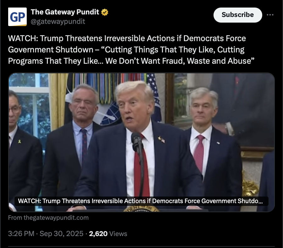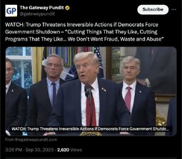 >>242295 TGP (TwiX) WATCH: Trump Threatens Irreversible Actions if Democrats Force Government Shutdown – “Cutting Things That They Like, Cutting Programs That They Like… We Don’t Want Fraud, Waste and Abuse”