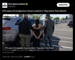 >>242304 OAN (TwiX) 275 cases of immigration fraud unveiled in ‘Operation Twin Shield’