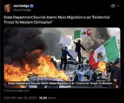 >>244930 (TwiX) "What's crazy to me is that there are Muslims immigrating and 'seeking asylum' in our country when there are 56 other Muslim countries out there that they could easily go to and not have to change a damn thing."
