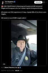 >>244936 (TwiX) UNREAL: American trucking group dedicated to getting illegal truck drivers off our roads tipped off authorities about a hotspot on I-40 in Texas known for illegal foreign drivers.