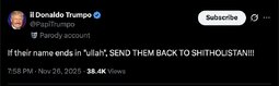 IL Donaldo Trumpo (T.me) If their name ends in "ullah", SEND THEM BACK TO SHITHOLISTAN!!!
