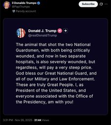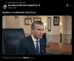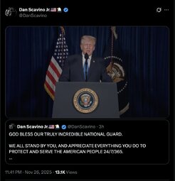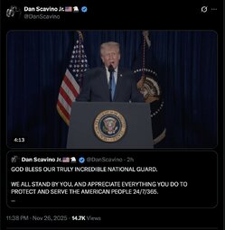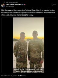 >>245207 GenStevenNordhaus (TwiX) SEA Raines and I join our entire National Guard family in praying for the recovery of the two West Virginia National Guard heroes who were shot while protecting our Nation's capital today.