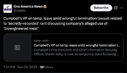 >>245096 (TwiX) The Vice President of Campbell's Soup Company Martin Bally EXPLODED in a meeting over the company using bioengineered ingredients including FAKE MEAT that comes from a 3-D printer.