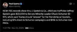 >>245023 PaulSperry (TwiX) BREAKING: House Oversight's release of Michael Wolff’s unpublished Epstein profile reveals the convicted underage sex trafficker told him he spent "100 hours" w/ Bill Clinton, inclg ferrying him around on his jet, and that Epstein's address book contained "many Clinton contacts."