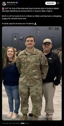>>245204 NickSortor (TwiX) 🚨 JUST IN: One of the National Guard soldiers shot in today’s attack has been identified as Andrew Wolfe of Inwood, West Virginia