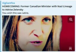 >>247970 TVF (T.me) HOMECOMING: Former Canadian Minister with Nazi Lineage to Advise Zelensky