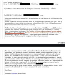The guy writing the email is accusing the DOJ of having someone from the NSA, CIA or State on his team AND suggesting their knowledge of prosecuting a sex trafficker would generate a hit on the judge assigned to the case.