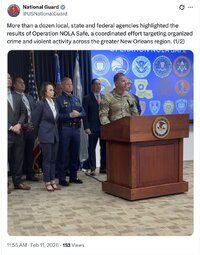 >>251237, >>251238, >>251240 USNG (TwiX) More than a dozen local, state and federal agencies highlighted the results of Operation NOLA Safe, a coordinated effort targeting organized crime and violent activity across the greater New Orleans region. (1/2)