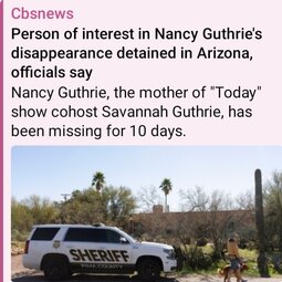 >>251285 PF (T.me) BREAKING: A person of interest in connection with Nancy Guthrie's disappearance has been detained in Arizona, sources say.