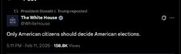 >>251226 TheWhiteHouse (TwiX) Good morning, American elections should be decided by American citizens ONLY. 🗳️