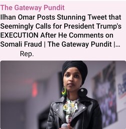 >>251249 GP (T.me) Ilhan Omar Posts Stunning Tweet that Seemingly Calls for President Trump’s EXECUTION After He Comments on Somali Fraud