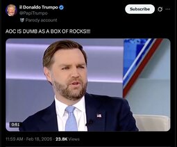 >>252070 RR47 (TwiX) .@POTUS: "I watched AOC answering questions in Munich. This was not a good look for the United States. I watched Gavin Newscum answering questions in Munich. This was a bad look for our country… These two people are incompetent."