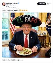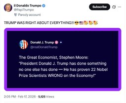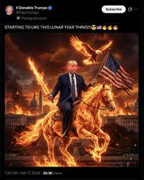 >>251995 DJT (TruSoc) Happy President’s Day! Prices and Inflation are Way Down. The Stock Market, and your 401k’s, are Way Up. Our Military is Strong and Powerful, Our Law Enforcement is GREAT, and Our Border is 100% Secure. Murders (YEAR 1900!) and Crime are at RECORD LOWS, and Our Country is Bigger, Better, and Stronger than EVER BEFORE!!! Working Hard - ENJOY YOUR DAY! President DJT