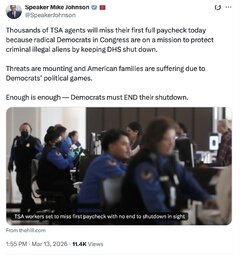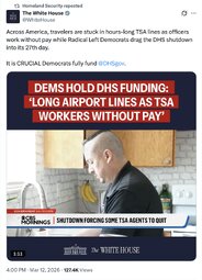 >>255243 TheWhiteHouse (TwiX) The Democrats' DHS shutdown is affecting hundreds of thousands of Americans.
