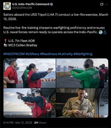 >>255775 SUCentComm (TwiX) U.S. Navy and Marine Corps maintenance crews are working around the clock aboard ships at sea, enabling U.S. forces to sustain air dominance over Iran during Operation Epic Fury.