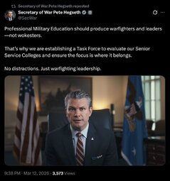 >>255789 SoWPH (TwiX) For over 20 years, legal shops across the military services have grown bloated—duplicating efforts, muddying lines of authority, and pulling judge advocates away from what matters most: advising commanders in the fight.