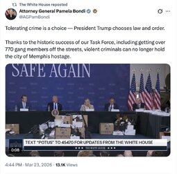 >>257399 TheWhiteHouse (TwiX) 🇺🇸 President Donald J. Trump in Memphis, the LARGEST violent crime drop ever: