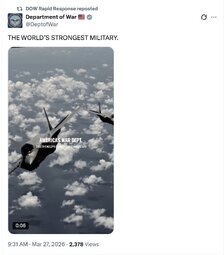 >>257603 USCentComm (TwiX) U.S. Air Force A-10 Thunderbolt II attack aircraft have been used to strike Iranian naval vessels during Operation Epic Fury.