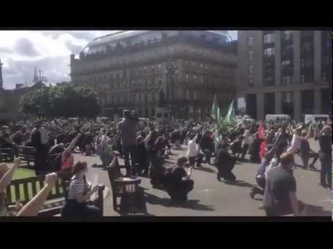 This morning a Muslim terrorist went on a mass stabbing rampage murdering at least three white Scots and doubtless injuring many more. Days before the mass carnage ensued, leftists gathered on the Parliament Lawn in downtown Glasgow kneeling with a black power fist in the air a plethora of pro-immigrant and outright communist slogans including: