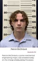 >Any person who disturbs the public peace, or the peace of others, by violent, or loud, or insulting, or profane, or indecent, or offensive, or boisterous conduct or language, or by intimidation, or seeking to intimidate any other person or persons, or by conduct either calculated to provoke a breach of the peace, or by conduct which may lead to a breach of the peace, or by any other act, shall be guilty of a misdemeanor, and upon conviction thereof, shall be punished by a fine of not more than Five Hundred Dollars ($500.00) or by imprisonment in the county jail not more than six (6) months, or both.