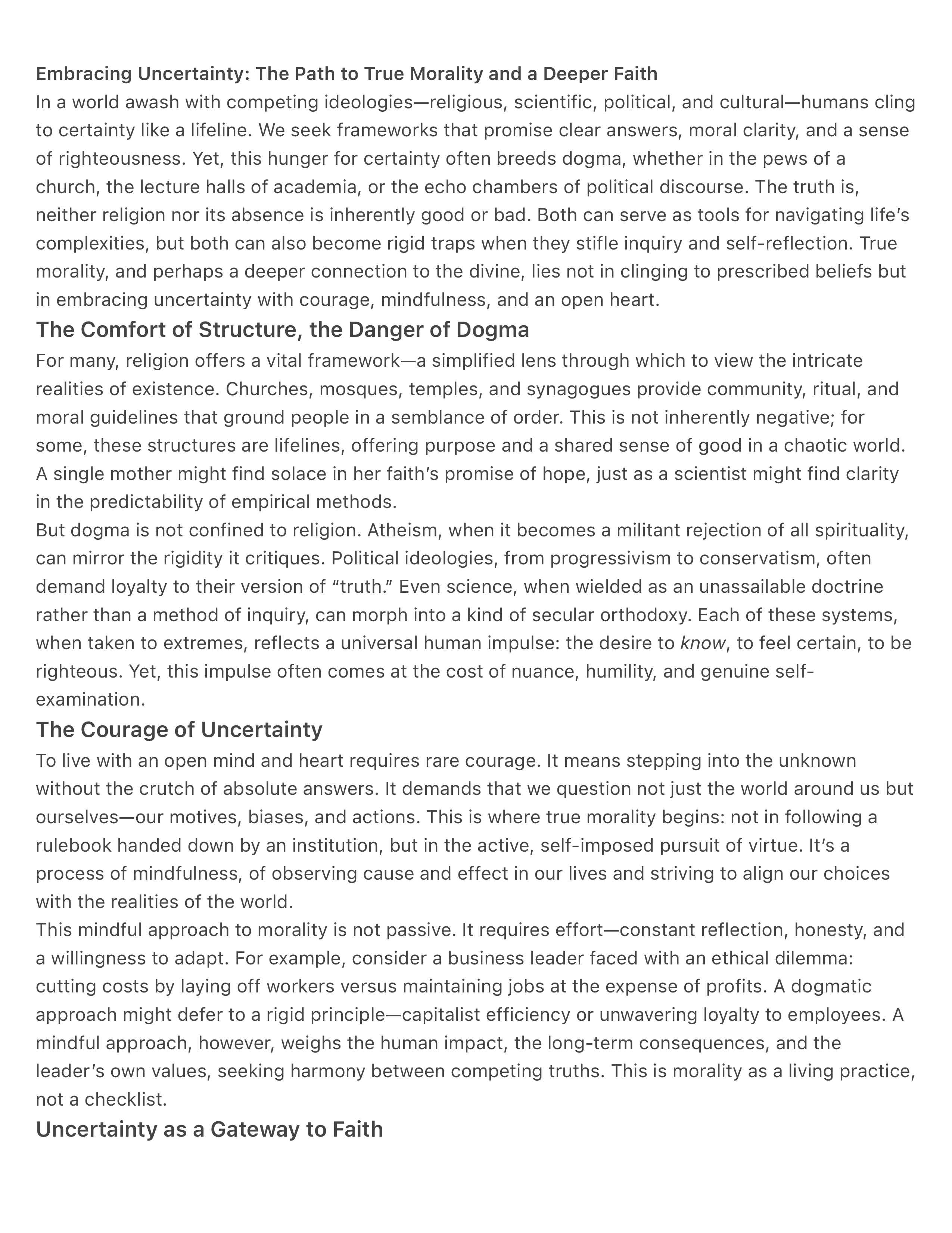 Embracing Uncertainty: The Path to True Morality and a Deeper Faith