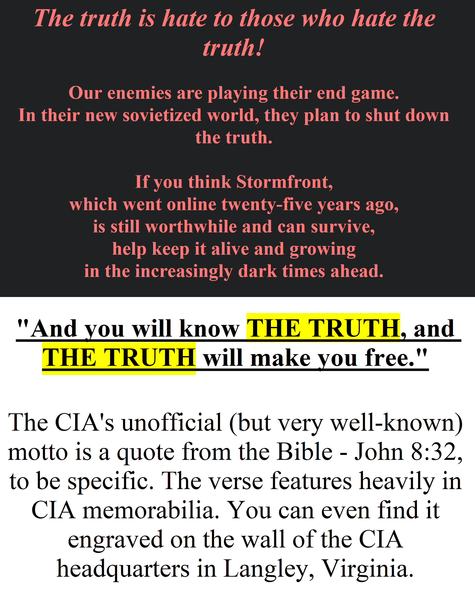 Charlie Kirk was CIA. CIA is judeo-satanic. It would make no sense for them to kill one of their own. You're wrong. This is social engineering. Really no different from the recent Luigi's Mansion hoax (another staged shooting with clear intentions of massaging general popular discourse).