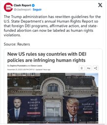 Originally posted at >>>/qresearch/23893189 (231828ZNOV25) Notable: Trump Orders U.S. Embassies to “Take Note” of Countries Where Authorities Promote or Fund Abortions, Euthanasia, Gender Reassignment Surgeries on Minors, or Diversity Policies