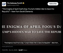 Originally posted at >>>/midnightriders/242575 (052327ZOCT25) Notable: TGP (TwiX) “The Enigma of April Fool’s Day: Trump’s Hidden War to Save the Republic” - New from David Clements