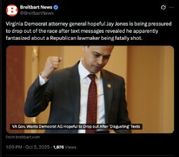 Originally posted at >>>/midnightriders/241393 (142344ZSEP25) Notable: TGP (TwiX) Evil Dem Connected to Virginia Gubernatorial Nominee Says Charlie Kirk Deserved to Die