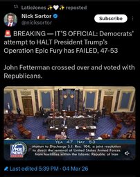 Originally posted at >>>/qresearch/24342831 (050520ZMAR26) Notable: ‘We’re in it’: Democrats won’t rule out giving Trump more money for Middle East war