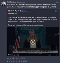 Originally posted at >>>/qresearch/24342871 (050531ZMAR26) Notable: Dan Scavino - “The hardest hits are yet to come from the U.S. Military…”