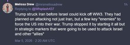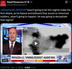 Originally posted at >>>/qresearch/24338161 (040439ZMAR26) Notable: Watters on Iran attack: The entire Mideast is united against this terroristic regime"