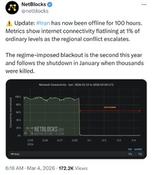 >>24564 Update: #Iran has now been offline for 100 hours.
