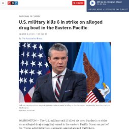 >>25942 U.S. military kills 6 in strike on alleged drug boat in the Eastern Pacific